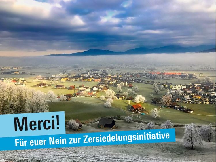 Die Schweizer Stimmbevölkerung hat in ihrem heutigen Plebiszit die Volksinitiative «Zersiedelung stoppen – für eine nachhaltige Siedlungsentwickung (Zersiedelungs-Initiative)» der Jungen Grünen bachab geschickt. Um der schweizweiten Zersiedelung entgegenzuwirken und diese zu stoppen, sollte insbesondere das Ausscheiden neuer Bauzonen nur noch zulässig sein, wenn eine andere unversiegelte Fläche von mindestens gleicher Grösse aus der Bauzone ausgezont wird. Mit der Ablehnung durch das Schweizer Stimmvolk konnte die Bevormundung über das zukünftige Wohnen und die Einfrierung der Bauzonen verhindert werden. Die in der Initiative geforderten Massnahmen hätten die unterschiedlichen Bedürfnisse und Veränderungen von Bevölkerung und Wirtschaft ausser Acht gelassen.